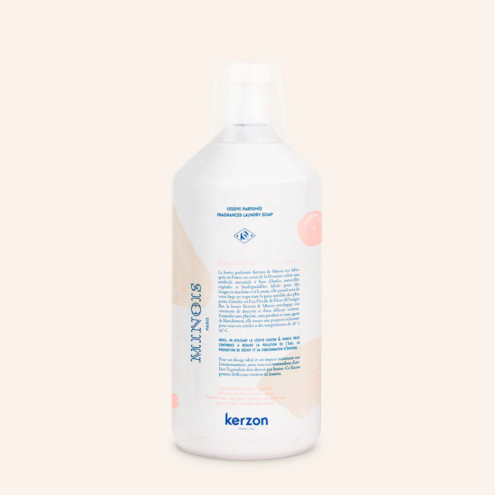Kerzon x Minois natural laundry detergent, very soft and formulated without allergens, takes care of your laundry without irritating the sensitive skin of babies and children.